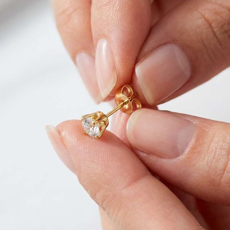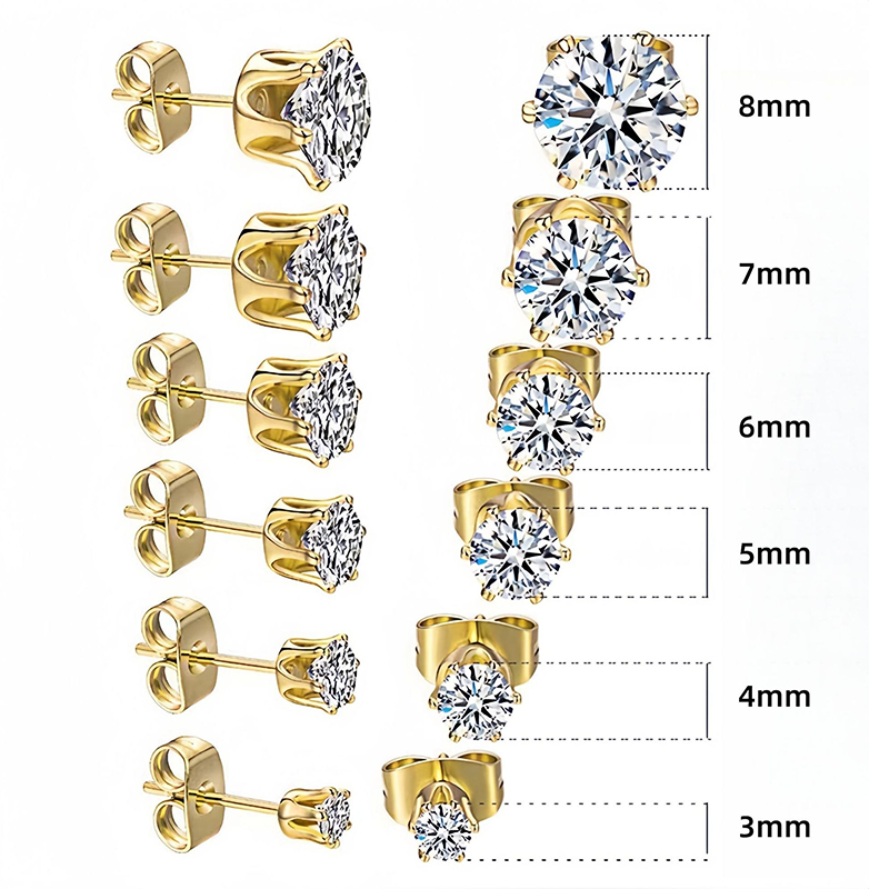 Classic 6-Prong Stainless Steel Earrings with Butterfly Backs